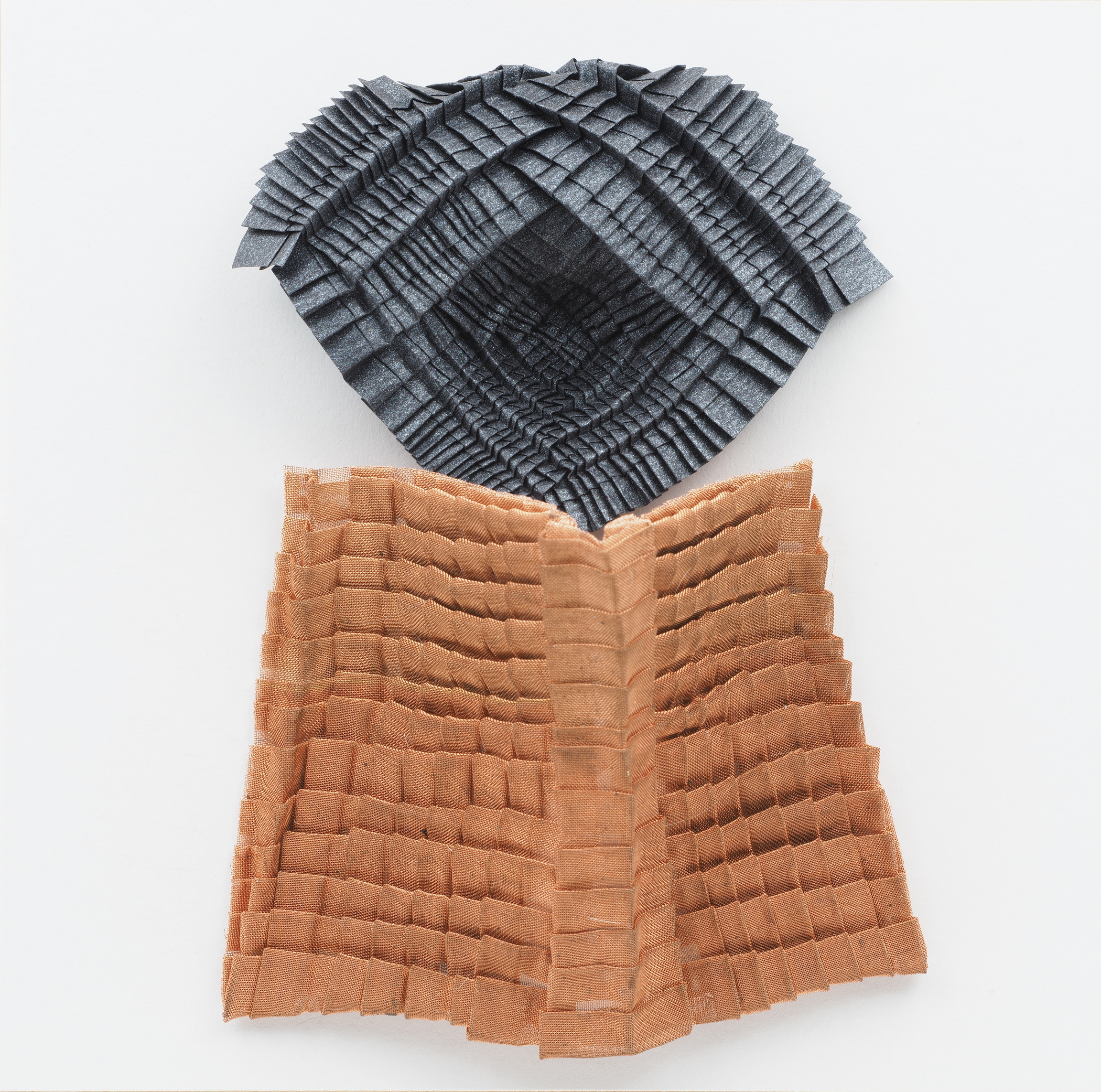 Iridescent paper and fine copper mesh.