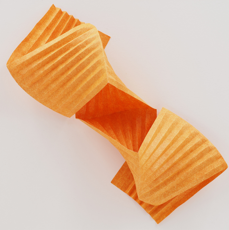 Elephanthide paper. Broken pleats create surfaces that appear to have negative curvature.